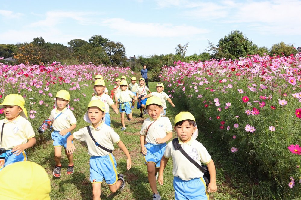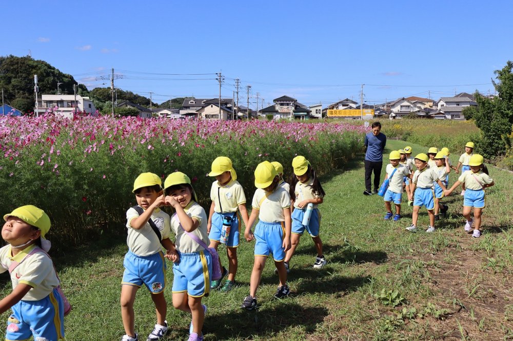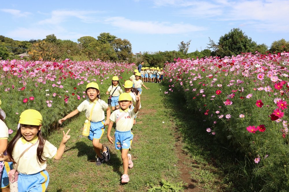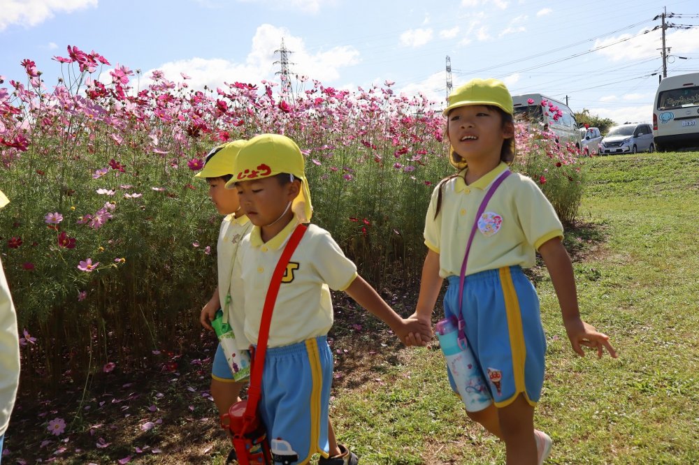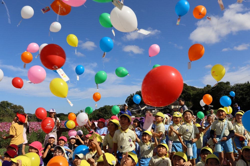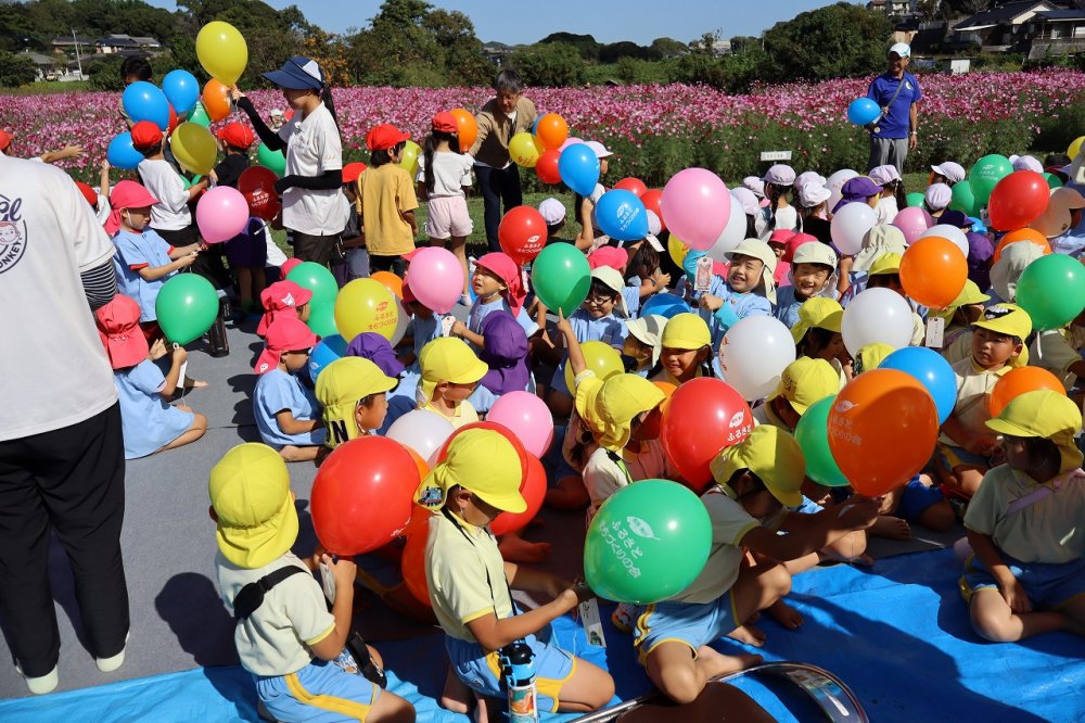 当日は、風船をとばしたり、コスモス畑を散歩したりしました。