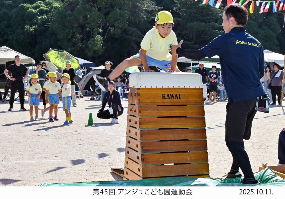 当日は、絶好の運動会日和に恵まれて、かけっこや跳び箱、鼓隊などを行いました。